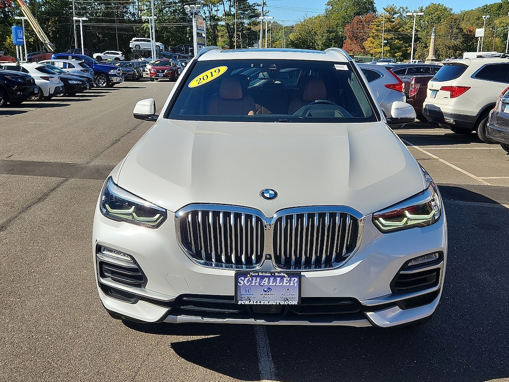 "Mineral White Metallic 2019 BMW X5 xDrive40i 3.0L I6 DOHC 24V TwinPower Turbo 8-Speed Automatic AWD10 Speakers 3.39 Axle Ratio 4-Wheel Disc Brakes 4-Zone Automatic Climate Control ABS brakes Active Cruise Control Air Conditioning Alloy wheels Aluminum Running Boards AM/FM radio AM/FM Stereo Apple CarPlay Auto High-beam Headlights Auto tilt-away steering wheel Auto-dimming door mirrors Auto-dimming Rear-View mirror Automatic temperature control Brake assist Bumpers: body-color Comfort Access Keyless Entry Compass Convenience Package Delay-off headlights Driver door bin Driver vanity mirror Dual front impact airbags Dual front side impact airbags Electronic Stability Control Emergency communication system: BMW Assist eCall Enhanced USB & Bluetooth Exterior Parking Camera Rear Four wheel independent suspension Front & Rear Heated Seats Front anti-roll bar Front Bucket Seats Front Center Armrest Front dual zone A/C Front fog lights Front reading lights Fully automatic headlights Garage door transmitter Genuine wood console insert Genuine wood dashboard insert Genuine wood door panel insert Gesture Control Head restraints memory Head-Up Display Heated door mirrors Heated Front Seats Heated front seats Heated Front Seats w/Armrests & Steering Wheel Hi-Fi Sound System Illuminated entry Knee airbag Leather Shift Knob Leather steering wheel Low tire pressure warning Lumbar Support Memory seat Navigation System Occupant sensing airbag Outside temperature display Overhead airbag Panic alarm Parking Assistance Package Parking Assistant Plus Passenger door bin Passenger vanity mirror Power adjustable front head restraints Power door mirrors Power driver seat Power Front Seats Power moonroof Power passenger seat Power steering Power windows Premium Package 2 Radio data system Rain sensing wipers Rear air conditioning Rear anti-roll bar Rear reading lights Rear seat center armrest Rear window defroster Rear window wiper Rear-View Camera Remote Engine Start Remote keyless entry Roof rack: rails only Security system SensaTec Upholstery SiriusXM Satellite Radio w/1 Year All Access Speed control Speed-sensing steering Speed-Sensitive Wipers Split folding rear seat Spoiler Sport Seats Sport steering wheel Steering wheel memory Steering wheel mounted audio controls Surround View w/3D View Tachometer Telescoping steering wheel Tilt steering wheel Traction control Trip computer Turn signal indicator mirrors Variably intermittent wipers Wheels: 19""x 9""V-Spoke (Style 734) WiFi Hotspot Wireless Charging. Odometer is 30001 miles below market average! 20/26 City/Highway MPGAwards: * 2019 KBB.com 10 Best Luxury SUVsSchaller Auto Group has TWO Used Car Locations: Right off Route 9 in New Britain and Route 9 and the Berlin Turnpike in Berlin. Please call 860-826-2023 to confirm this Vehicle's Location. All of our Pre-Owned Vehicles go through our Comprehensive 125 Point Quality Inspection. Every Schaller pre-owned vehicle comes with warranty coverage! With all budgets in mind we now offer Schaller âValue Carsâ starting at $2995 and include a 30 day satisfaction guarantee and all come with a FREE Carfax Vehicle History Report. The Schaller Auto Group is Family Owned and Operated for Over 65 Years and is known for Selling Top Quality Used Vehicles and Standing behind them After the Sale!"