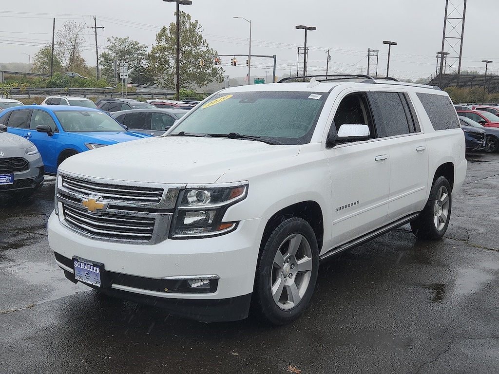 Iridescent Pearl Tricoat 2019 Chevrolet Suburban Premier EcoTec3 5.3L V8 6-Speed Automatic Electronic with Overdrive 4WD10 Speakers 12-Volt Auxiliary Power Outlet (5) 1st & 2nd Row Color-Keyed Carpeted Floor Mats 2-Speed Active Electronic AutoTrac Transfer Case 3.42 Rear Axle Ratio 3rd Row 60/40 Power Fold Split-Bench 3rd row seats: split-bench 4-Wheel Antilock Disc Brakes 4-Wheel Disc Brakes 6-Way Power Front Passenger Seat Adjuster ABS brakes Adaptive suspension Adjustable pedals Air Conditioning All-Weather Floor Liner Package (LPO) Alloy wheels AM/FM radio: SiriusXM AM/FM Stereo w/Navigation Apple CarPlay/Android Auto Auto High-beam Headlights Auto-dimming door mirrors Auto-Dimming Inside Rear-View Mirror Auto-dimming Rear-View mirror Automatic temperature control Black Assist Steps Black Roof Rack Cross Bars Bodyside moldings Bose Centerpoint Premium 10-Speaker Surround Sound Brake assist Bumpers: body-color CD player Color-Keyed Carpeting Floor Covering Compass Delay-off headlights Driver door bin Driver Inboard & Front Passenger Airbags Driver vanity mirror Dual front impact airbags Dual front side impact airbags Electronic Cruise Control w/Set & Resume Speed Electronic Stability Control Emergency communication system: OnStar and Chevrolet connected services capable Enhanced Driver Alert Package Enhanced Driver Information Center Exterior Parking Camera Rear Floor Console w/Storage Area Fog Lamps Forward Collision Alert Front & Rear Park Assist Front anti-roll bar Front Bucket Seats Front Center Armrest Front dual zone A/C Front fog lights Front reading lights Front wheel independent suspension Fully automatic headlights Garage door transmitter Hands-Free Power Liftgate HD Radio Head-Up Display Headphones Heated & Ventilated Driver & Front Passenger Seats Heated & Ventilated Front Reclining Bucket Seats Heated 2nd Row Outboard Seats Heated door mirrors Heated front seats Heated Leather Wrapped Steering Wheel Heated rear seats Heated steering wheel High-Intensity Discharge Headlights Illuminated entry Integrated Trailer Brake Controller IntelliBeam w/Automatic High Beam On/Off Lane Change Alert w/Side Blind Zone Alert Lane Keep Assist w/Lane Departure Warning Leather Shift Knob License Plate Front Mounting Package Low Speed Forward Automatic Braking Low tire pressure warning Magnetic Ride Control Suspension Package Max Trailering Package Memory seat Memory Settings Navigation System Occupant sensing airbag Outside temperature display Overhead airbag Overhead console Panic alarm Passenger door bin Passenger vanity mirror Passive Entry System Pedal memory Perforated Leather-Appointed Seat Trim Power door mirrors Power driver seat Power Folding & Adjustable Heated Outside Mirrors Power Liftgate Power passenger seat Power Release 2nd Row Bucket Seats Power steering Power Tilt & Telescoping Steering Column Power Tilt-Sliding Sunroof w/Express-Open/Close Power windows Power-Adjustable Accelerator & Brake Pedals Power-Retractable Assist Steps Preferred Equipment Group 1LZ Push Button Keyless Start Rain sensing wipers Rear air conditioning Rear anti-roll bar Rear audio controls Rear Cross Traffic Alert Rear reading lights Rear Seat Entertainment System Rear window defroster Rear window wiper Remote keyless entry Remote Vehicle Start Roof rack: rails only Roof-Mounted Luggage Rack Side Rails Safety Alert Seat Security system Single-Slot CD/MP3 Player SiriusXM NavTraffic SiriusXM Radio Speed control Speed-sensing steering Split folding rear seat Spoiler Steering wheel memory Steering wheel mounted audio controls Sun Entertainment & Destinations Package Tachometer Telescoping steering wheel Tilt steering wheel Traction control Trip computer Turn signal indicator mirrors Universal Home Remote Variably intermittent wipers Ventilated front seats Voltmeter Wheel Locks (Set of 4) (LPO)