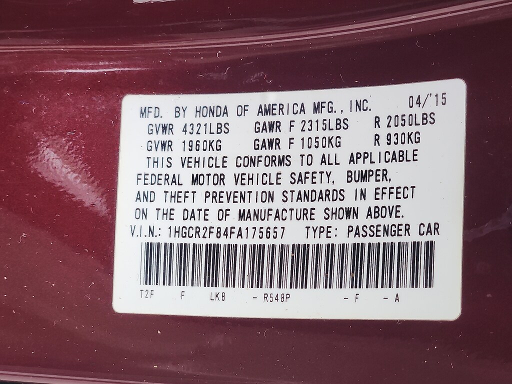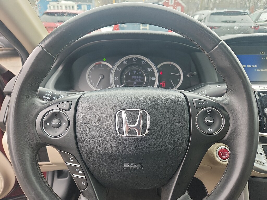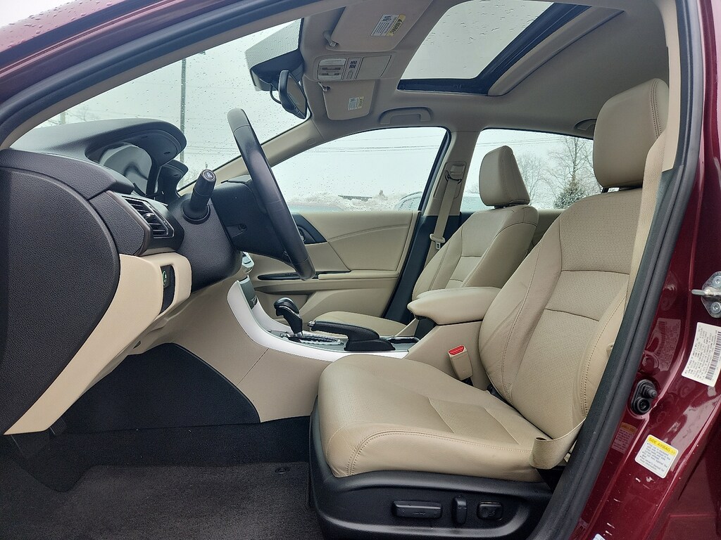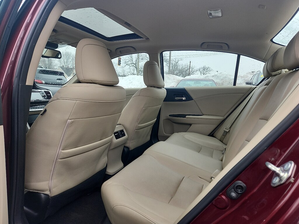 "Recent Arrival! Basque Red Pearl II 2015 Honda Accord EX-L 2.4L I4 DOHC i-VTEC 16V CVT FWD** FULLY SERVICED & WHITE GLOVE DETAILED 17""Alloy Wheels 4-Wheel Disc Brakes 7 Speakers ABS brakes Air Conditioning AM/FM radio: SiriusXM Auto-dimming Rear-View mirror Automatic temperature control Brake assist Bumpers: body-color CD player Compass Delay-off headlights Driver door bin Driver vanity mirror Dual front impact airbags Dual front side impact airbags Electronic Stability Control Exterior Parking Camera Rear Four wheel independent suspension Front anti-roll bar Front Bucket Seats Front Center Armrest Front dual zone A/C Front fog lights Front reading lights Fully automatic headlights Garage door transmitter: HomeLink Heated door mirrors Heated Front Bucket Seats Heated front seats Illuminated entry Leather steering wheel Low tire pressure warning Memory seat Occupant sensing airbag Outside temperature display Overhead airbag Overhead console Panic alarm Passenger door bin Passenger vanity mirror Perforated Leather-Trimmed Seats Power door mirrors Power driver seat Power moonroof Power passenger seat Power steering Power windows Radio data system Radio: 360-Watt AM/FM/CD Premium Audio System Rear anti-roll bar Rear seat center armrest Rear window defroster Remote keyless entry Security system Speed control Speed-sensing steering Speed-Sensitive Wipers Steering wheel mounted audio controls Tachometer Telescoping steering wheel Tilt steering wheel Traction control Trip computer Turn signal indicator mirrors Variably intermittent wipers.Awards: * 2015 KBB.com Brand Image AwardsKelley Blue Book Brand Image Awards are based on the Brand Watch(tm) study from Kelley Blue Book Market Intelligence. Award calculated among non-luxury shoppers. For more information visit www.kbb.com. Kelley Blue Book is a registered trademark of Kelley Blue Book Co. Inc.Schaller Acura is a Family Owned and Operated Business since 1986. We pride ourselves on Selling Quality Vehicles at a Fantastic Value. Come in Today for a Transparent Sales Experience. View our Entire Inventory at www.schalleracura.com or Contact Us @ 1.888.566.5934 to Schedule a Test Drive!"