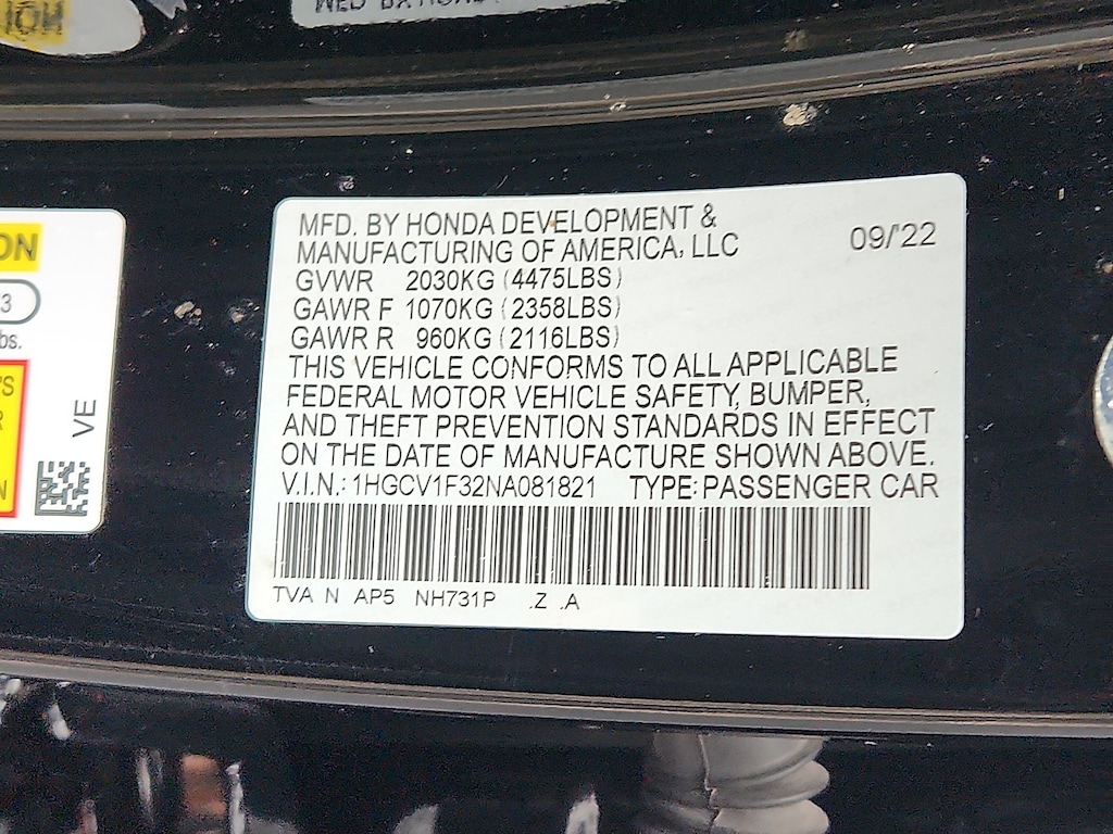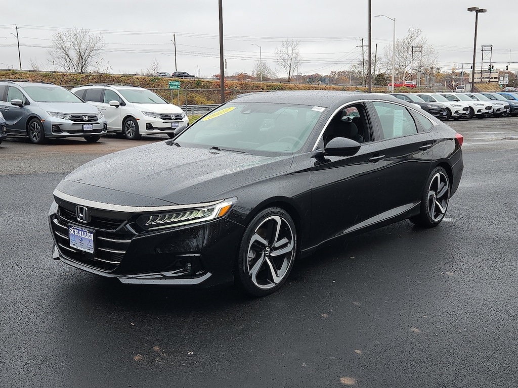 "Crystal Black Pearl 2022 Honda Accord Sport 1.5T I4 DOHC 16V Turbocharged VTEC CVT FWD4-Wheel Disc Brakes 8 Speakers ABS brakes Adaptive Cruise Control: Adaptive Cruise Control (ACC) with Low-Speed Follow Air Conditioning Alloy wheels AM/FM radio Apple CarPlay/Android Auto Auto High-beam Headlights Automatic temperature control Brake assist Bumpers: body-color Delay-off headlights Driver door bin Driver vanity mirror Dual front impact airbags Dual front side impact airbags Electronic Stability Control Emergency communication system: HondaLink Exterior Parking Camera Rear Fabric w/Synthetic Leather Seat Trim Forward collision: Collision Mitigation Braking System (CMBS) + FCW mitigation Four wheel independent suspension Front anti-roll bar Front Bucket Seats Front Center Armrest Front dual zone A/C Front fog lights Front reading lights Fully automatic headlights Illuminated entry Knee airbag Lane Departure Warning System Leather Shift Knob Leather steering wheel Low tire pressure warning Occupant sensing airbag Outside temperature display Overhead airbag Overhead console Panic alarm Passenger door bin Passenger vanity mirror Power door mirrors Power driver seat Power steering Power windows Radio data system Radio: 180-Watt AM/FM Audio System Rear anti-roll bar Rear seat center armrest Rear window defroster Remote keyless entry Security system Speed control Speed-sensing steering Speed-Sensitive Wipers Split folding rear seat Spoiler Steering wheel mounted audio controls Tachometer Telescoping steering wheel Tilt steering wheel Traction control Trip computer Variably intermittent wipers Wheels: 19""Machine-Finished Alloy w/Black Inserts. Priced below KBB Fair Purchase Price! Odometer is 2887 miles below market average! 29/35 City/Highway MPGSchaller Auto Group has TWO Used Car Locations: Right off Route 9 in New Britain and Route 9 and the Berlin Turnpike in Berlin. Please call 860-826-2023 to confirm this Vehicle's Location. All of our Pre-Owned Vehicles go through our Comprehensive 125 Point Quality Inspection. Every Schaller pre-owned vehicle comes with warranty coverage! With all budgets in mind we now offer Schaller âValue Carsâ starting at $2995 and include a 30 day satisfaction guarantee and all come with a FREE Carfax Vehicle History Report. The Schaller Auto Group is Family Owned and Operated for Over 65 Years and is known for Selling Top Quality Used Vehicles and Standing behind them After the Sale!"