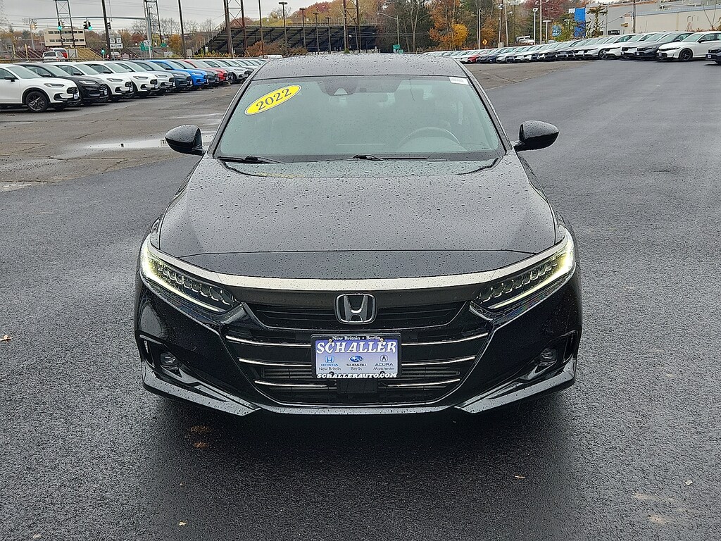 "Crystal Black Pearl 2022 Honda Accord Sport 1.5T I4 DOHC 16V Turbocharged VTEC CVT FWD4-Wheel Disc Brakes 8 Speakers ABS brakes Adaptive Cruise Control: Adaptive Cruise Control (ACC) with Low-Speed Follow Air Conditioning Alloy wheels AM/FM radio Apple CarPlay/Android Auto Auto High-beam Headlights Automatic temperature control Brake assist Bumpers: body-color Delay-off headlights Driver door bin Driver vanity mirror Dual front impact airbags Dual front side impact airbags Electronic Stability Control Emergency communication system: HondaLink Exterior Parking Camera Rear Fabric w/Synthetic Leather Seat Trim Forward collision: Collision Mitigation Braking System (CMBS) + FCW mitigation Four wheel independent suspension Front anti-roll bar Front Bucket Seats Front Center Armrest Front dual zone A/C Front fog lights Front reading lights Fully automatic headlights Illuminated entry Knee airbag Lane Departure Warning System Leather Shift Knob Leather steering wheel Low tire pressure warning Occupant sensing airbag Outside temperature display Overhead airbag Overhead console Panic alarm Passenger door bin Passenger vanity mirror Power door mirrors Power driver seat Power steering Power windows Radio data system Radio: 180-Watt AM/FM Audio System Rear anti-roll bar Rear seat center armrest Rear window defroster Remote keyless entry Security system Speed control Speed-sensing steering Speed-Sensitive Wipers Split folding rear seat Spoiler Steering wheel mounted audio controls Tachometer Telescoping steering wheel Tilt steering wheel Traction control Trip computer Variably intermittent wipers Wheels: 19""Machine-Finished Alloy w/Black Inserts. 29/35 City/Highway MPGSchaller Auto Group has TWO Used Car Locations: Right off Route 9 in New Britain and Route 9 and the Berlin Turnpike in Berlin. Please call 860-826-2023 to confirm this Vehicle's Location. All of our Pre-Owned Vehicles go through our Comprehensive 125 Point Quality Inspection. Every Schaller pre-owned vehicle comes with warranty coverage! With all budgets in mind we now offer Schaller âValue Carsâ starting at $2995 and include a 30 day satisfaction guarantee and all come with a FREE Carfax Vehicle History Report. The Schaller Auto Group is Family Owned and Operated for Over 65 Years and is known for Selling Top Quality Used Vehicles and Standing behind them After the Sale!"
