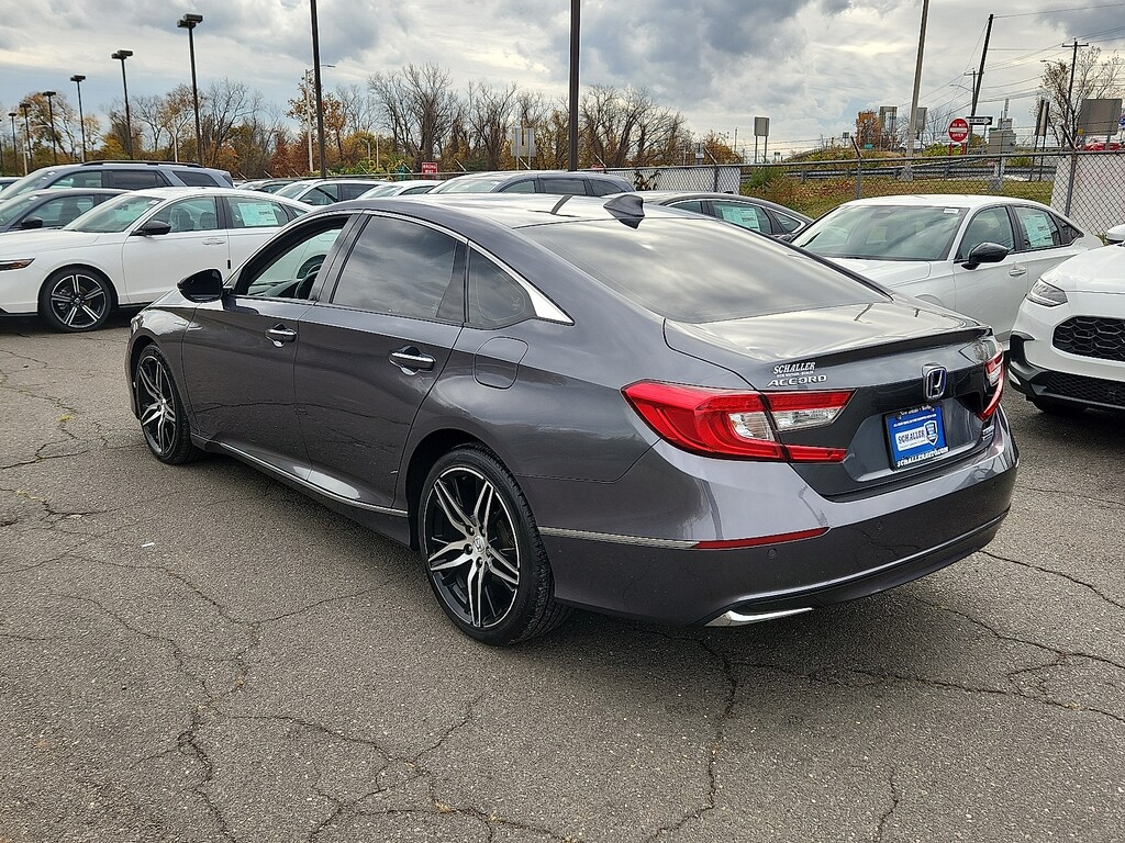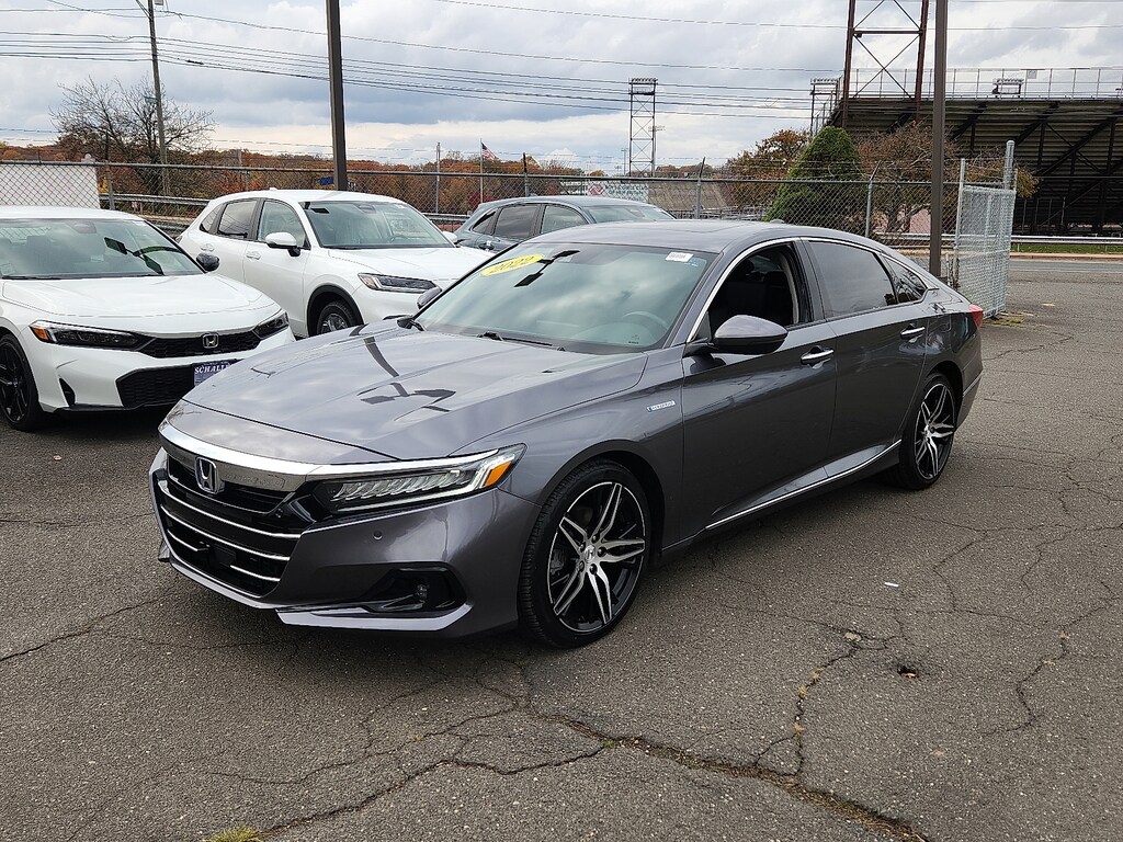 "Gray 2022 Honda Accord Hybrid Touring 2.0L 4-Cylinder DOHC 16V i-VTEC eCVT FWD10 Speakers 4-Wheel Disc Brakes ABS brakes Adaptive Cruise Control: Adaptive Cruise Control (ACC) with Low-Speed Follow Adaptive suspension Air Conditioning Alloy wheels AM/FM radio: SiriusXM Apple CarPlay/Android Auto Auto High-beam Headlights Auto-dimming Rear-View mirror Automatic temperature control Blind Spot Information (BSI) System warning Brake assist Bumpers: body-color Compass Delay-off headlights Driver door bin Driver vanity mirror Dual front impact airbags Dual front side impact airbags Electronic Stability Control Emergency communication system: HondaLink Exterior Parking Camera Rear Forward collision: Collision Mitigation Braking System (CMBS) + FCW mitigation Four wheel independent suspension Front anti-roll bar Front Bucket Seats Front Center Armrest Front dual zone A/C Front fog lights Front reading lights Fully automatic headlights Garage door transmitter: HomeLink Heads-Up Display Heated & Ventilated Front Bucket Seats Heated door mirrors Heated front seats Heated rear seats Illuminated entry Knee airbag Lane Departure Warning System Leather steering wheel Low tire pressure warning Memory seat Navigation system: Honda Satellite-Linked Navigation System Occupant sensing airbag Outside temperature display Overhead airbag Overhead console Panic alarm Passenger door bin Passenger vanity mirror Perforated Leather Seat Trim Power door mirrors Power driver seat Power moonroof Power passenger seat Power steering Power windows Radio data system Radio: 450-Watt HD Premium Audio System Rain sensing wipers Rear anti-roll bar Rear seat center armrest Rear window defroster Remote keyless entry Security system Speed control Speed-sensing steering Speed-Sensitive Wipers Split folding rear seat Steering wheel mounted audio controls Telescoping steering wheel Tilt steering wheel Traction control Trip computer Turn signal indicator mirrors Variably intermittent wipers Ventilated front seats Wheels: 19""Machine-Finished Alloy w/Gray Inserts. Odometer is 9201 miles below market average! 44/41 City/Highway MPGSchaller Auto Group has TWO Used Car Locations: Right off Route 9 in New Britain and Route 9 and the Berlin Turnpike in Berlin. Please call 860-826-2023 to confirm this Vehicle's Location. All of our Pre-Owned Vehicles go through our Comprehensive 125 Point Quality Inspection. Every Schaller pre-owned vehicle comes with warranty coverage! With all budgets in mind we now offer Schaller âValue Carsâ starting at $2995 and include a 30 day satisfaction guarantee and all come with a FREE Carfax Vehicle History Report. The Schaller Auto Group is Family Owned and Operated for Over 65 Years and is known for Selling Top Quality Used Vehicles and Standing behind them After the Sale!"