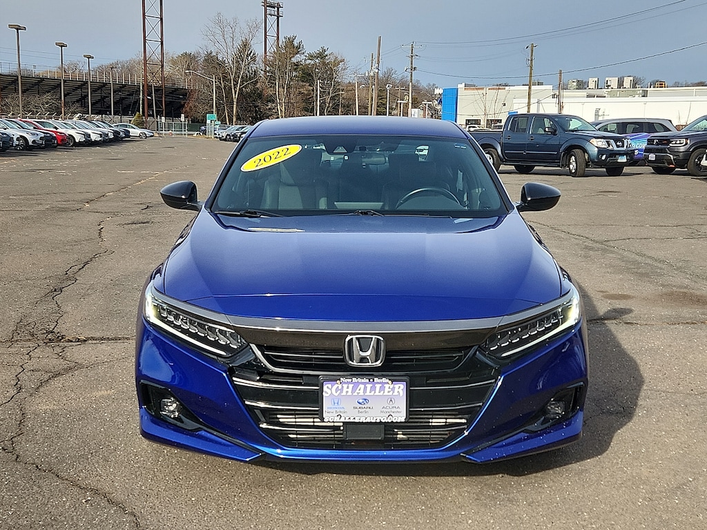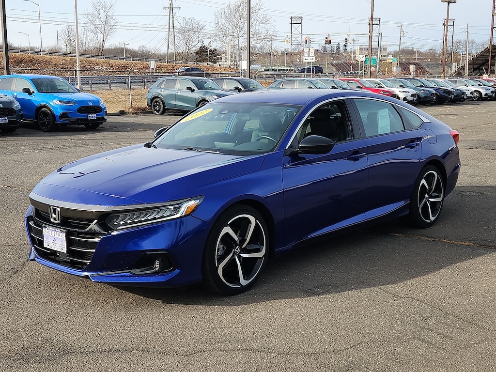 "Still Night Pearl 2022 Honda Accord Sport 1.5T I4 DOHC 16V Turbocharged VTEC CVT FWD4-Wheel Disc Brakes 8 Speakers ABS brakes Adaptive Cruise Control: Adaptive Cruise Control (ACC) with Low-Speed Follow Air Conditioning AM/FM radio Apple CarPlay/Android Auto Auto High-beam Headlights Automatic temperature control Brake assist Bumpers: body-color Delay-off headlights Driver door bin Driver vanity mirror Dual front impact airbags Dual front side impact airbags Electronic Stability Control Emergency communication system: HondaLink Exterior Parking Camera Rear Fabric w/Synthetic Leather Seat Trim Forward collision: Collision Mitigation Braking System (CMBS) + FCW mitigation Four wheel independent suspension Front anti-roll bar Front Bucket Seats Front Center Armrest Front dual zone A/C Front fog lights Front reading lights Fully automatic headlights Illuminated entry Knee airbag Lane Departure Warning System Leather Shift Knob Leather steering wheel Low tire pressure warning Occupant sensing airbag Outside temperature display Overhead airbag Overhead console Panic alarm Passenger door bin Passenger vanity mirror Power door mirrors Power driver seat Power steering Power windows Radio data system Radio: 180-Watt AM/FM Audio System Rear anti-roll bar Rear seat center armrest Rear window defroster Remote keyless entry Security system Speed control Speed-sensing steering Speed-Sensitive Wipers Split folding rear seat Spoiler Steering wheel mounted audio controls Tachometer Telescoping steering wheel Tilt steering wheel Traction control Trip computer Variably intermittent wipers Wheels: 19""Machine-Finished Alloy w/Black Inserts. Odometer is 12990 miles below market average! 29/35 City/Highway MPGHondaTrue Certified Details: * Roadside Assistance * Limited Warranty: 24 Month/100000 Mile (whichever comes first) after new car warranty expires or from certified purchase date * 182 Point Inspection * Transferable Warranty * Vehicle History * Warranty Deductible: $0 * Powertrain Limited Warranty: 84 Month/100000 Mile (whichever comes first) from original in-service date * Vehicles purchased within New Vehicle Limited Warranty period: extends New Vehicle Limited Warranty to 5 years*/60000 miles*. Honda Care Roadside Assistance for 2 year/100000 miles (whichever occurs first). Up to two complimentary oil changes within the first year of ownership. SiriusXM 90-Day Trial.Schaller Auto Group has TWO Used Car Locations: Right off Route 9 in New Britain and Route 9 and the Berlin Turnpike in Berlin. Please call 860-826-2023 to confirm this Vehicle's Location. All of our Pre-Owned Vehicles go through our Comprehensive 125 Point Quality Inspection. Every Schaller pre-owned vehicle comes with warranty coverage! With all budgets in mind we now offer Schaller âValue Carsâ starting at $2995 and include a 30 day satisfaction guarantee and all come with a FREE Carfax Vehicle History Report. The Schaller Auto Group is Family Owned and Operated for Over 65 Years and is known for Selling Top Quality Used Vehicles and Standing behind them After the Sale!"