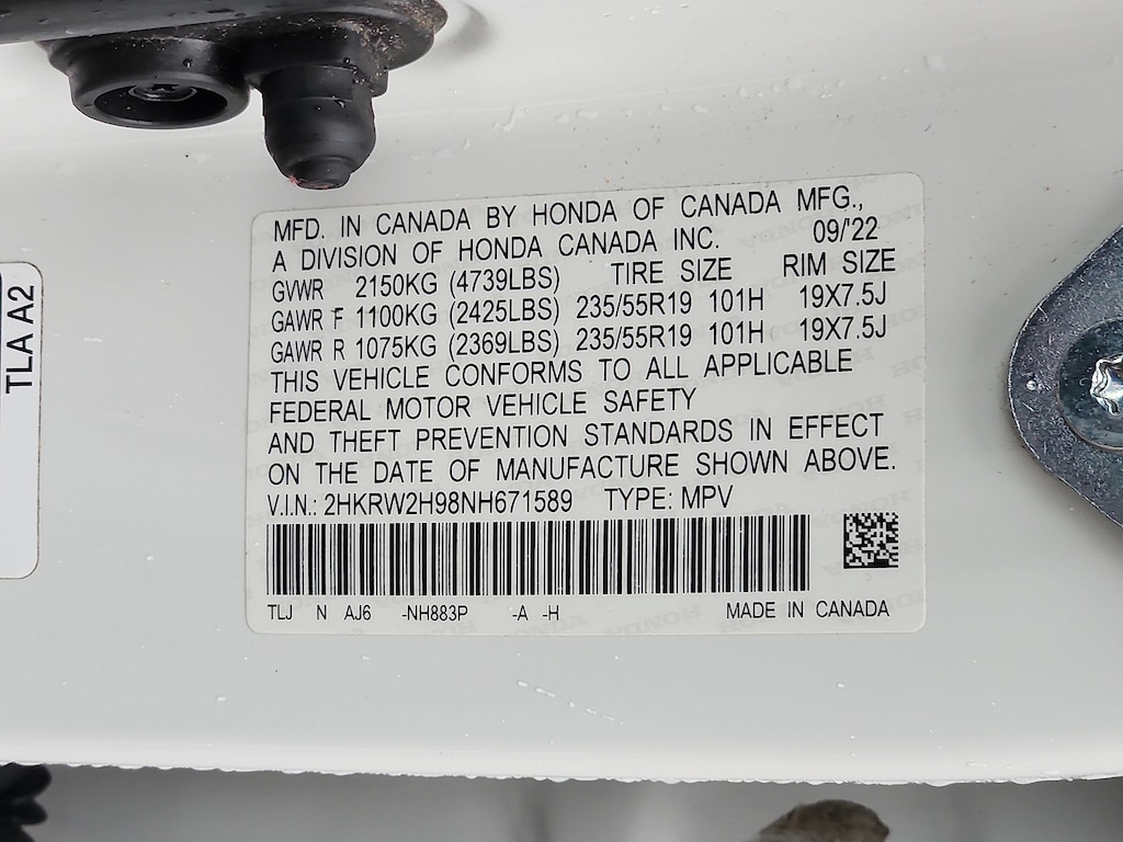 "White 2022 Honda CR-V Touring 1.5L I4 DOHC 16V CVT AWD4-Wheel Disc Brakes 5.64 Axle Ratio 9 Speakers ABS brakes Adaptive Cruise Control: Adaptive Cruise Control (ACC) with Low-Speed Follow Air Conditioning Alloy wheels AM/FM radio: SiriusXM Apple CarPlay/Android Auto Auto High-beam Headlights Auto-dimming Rear-View mirror Automatic temperature control Blind Spot Information (BSI) System warning Brake assist Bumpers: body-color Compass Delay-off headlights Driver door bin Driver vanity mirror Dual front impact airbags Dual front side impact airbags Electronic Stability Control Exterior Parking Camera Rear Forward collision: Collision Mitigation Braking System (CMBS) + FCW mitigation Four wheel independent suspension Front anti-roll bar Front Bucket Seats Front Center Armrest Front dual zone A/C Front fog lights Front reading lights Garage door transmitter: HomeLink Heated door mirrors Heated Front Bucket Seats Heated front seats Heated steering wheel Illuminated entry Leather Seat Trim Leather Shift Knob Low tire pressure warning Memory seat Navigation system: Honda Satellite-Linked Navigation System Occupant sensing airbag Outside temperature display Overhead airbag Overhead console Panic alarm Passenger door bin Passenger vanity mirror Power door mirrors Power driver seat Power Liftgate Power moonroof Power passenger seat Power steering Power windows Radio data system Radio: 330-Watt AM/FM/HD/SiriusXM Prem Audio System Rain sensing wipers Rear anti-roll bar Rear seat center armrest Rear window defroster Rear window wiper Remote keyless entry Roof rack: rails only Security system Speed control Speed-sensing steering Speed-Sensitive Wipers Split folding rear seat Spoiler Steering wheel mounted audio controls Tachometer Telescoping steering wheel Tilt steering wheel Traction control Trip computer Turn signal indicator mirrors Variably intermittent wipers Wheels: 19""Machine-Finished Alloy w/Gray Inserts. 27/32 City/Highway MPGSchaller Auto Group has TWO Used Car Locations: Right off Route 9 in New Britain and Route 9 and the Berlin Turnpike in Berlin. Please call 860-826-2023 to confirm this Vehicle's Location. All of our Pre-Owned Vehicles go through our Comprehensive 125 Point Quality Inspection. Every Schaller pre-owned vehicle comes with warranty coverage! With all budgets in mind we now offer Schaller âValue Carsâ starting at $2995 and include a 30 day satisfaction guarantee and all come with a FREE Carfax Vehicle History Report. The Schaller Auto Group is Family Owned and Operated for Over 65 Years and is known for Selling Top Quality Used Vehicles and Standing behind them After the Sale!"