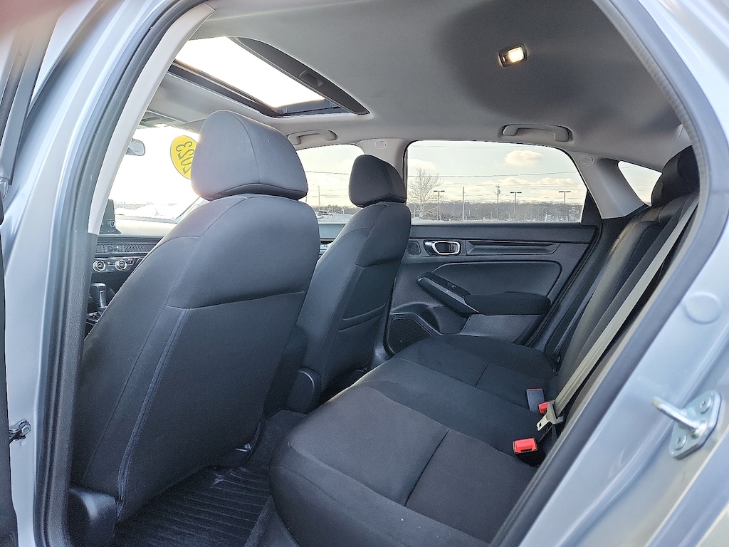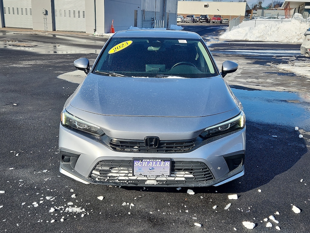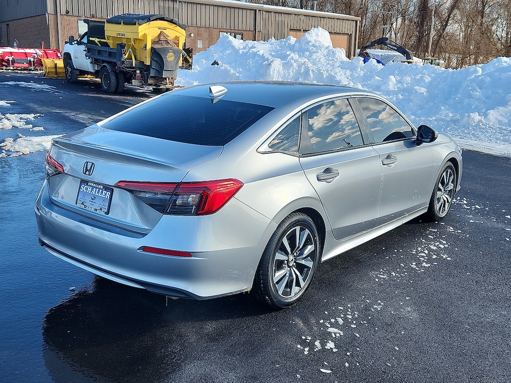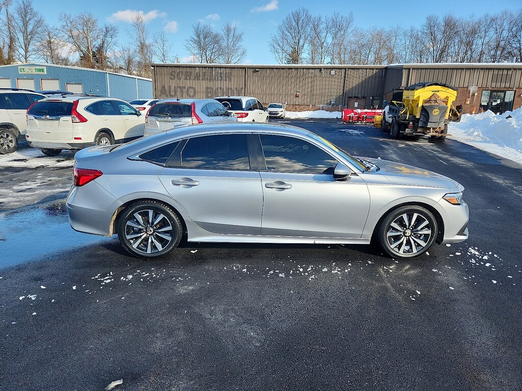 "Silver 2023 Honda Civic EX w/o BSI 1.5L I-4 DI DOHC Turbocharged CVT FWD4-Wheel Disc Brakes 8 Speakers ABS brakes Adaptive Cruise Control: Adaptive Cruise Control (ACC) with Low-Speed Follow Air Conditioning Alloy wheels AM/FM radio Apple CarPlay/Android Auto Auto High-beam Headlights Automatic temperature control Brake assist Bumpers: body-color Cloth Seat Trim Delay-off headlights Driver door bin Driver vanity mirror Dual front impact airbags Dual front side impact airbags Electronic Stability Control Emergency communication system: HondaLink Exterior Parking Camera Rear Four wheel independent suspension Front anti-roll bar Front Bucket Seats Front Center Armrest Front dual zone A/C Front reading lights Fully automatic headlights Heated door mirrors Heated Front Bucket Seats Heated front seats Illuminated entry Knee airbag Leather Shift Knob Leather steering wheel Low tire pressure warning Occupant sensing airbag Outside temperature display Overhead airbag Overhead console Panic alarm Passenger door bin Passenger vanity mirror Power door mirrors Power moonroof Power steering Power windows Radio data system Radio: 180-Watt Audio System w/8 Speakers Rear anti-roll bar Rear seat center armrest Rear side impact airbag Rear window defroster Remote keyless entry Security system Speed control Speed-sensing steering Split folding rear seat Steering wheel mounted audio controls Tachometer Telescoping steering wheel Tilt steering wheel Traction control Trip computer Variably intermittent wipers Wheels: 17""Alloy w/Gloss Black Inserts. Priced below KBB Fair Purchase Price! Odometer is 8798 miles below market average! 33/42 City/Highway MPGSchaller Auto Group has TWO Used Car Locations: Right off Route 9 in New Britain and Route 9 and the Berlin Turnpike in Berlin. Please call 860-826-2023 to confirm this Vehicle's Location. All of our Pre-Owned Vehicles go through our Comprehensive 125 Point Quality Inspection. Every Schaller pre-owned vehicle comes with warranty coverage! With all budgets in mind we now offer Schaller âValue Carsâ starting at $2995 and include a 30 day satisfaction guarantee and all come with a FREE Carfax Vehicle History Report. The Schaller Auto Group is Family Owned and Operated for Over 65 Years and is known for Selling Top Quality Used Vehicles and Standing behind them After the Sale!"