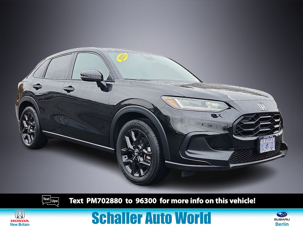 "Black 2023 Honda HR-V Sport 2.0L I4 DOHC 16V i-VTEC CVT AWD4-Wheel Disc Brakes 5.436 Axle Ratio 6 Speakers ABS brakes Adaptive Cruise Control: Adaptive Cruise Control (ACC) with Low-Speed Follow Air Conditioning Alloy wheels AM/FM radio Apple CarPlay/Android Auto Auto High-beam Headlights Automatic temperature control Blind Spot Information (BSI) System warning Brake assist Bumpers: body-color Cloth Seat Trim Delay-off headlights Driver door bin Driver vanity mirror Dual front impact airbags Dual front side impact airbags Electronic Stability Control Emergency communication system: HondaLink Exterior Parking Camera Rear Four wheel independent suspension Front anti-roll bar Front Bucket Seats Front Center Armrest Front reading lights Fully automatic headlights Heated door mirrors Heated Front Bucket Seats Heated front seats Illuminated entry Knee airbag Leather Shift Knob Low tire pressure warning Occupant sensing airbag Outside temperature display Overhead airbag Panic alarm Passenger door bin Passenger vanity mirror Power door mirrors Power steering Power windows Radio data system Radio: 180-Watt Audio System w/6 Speakers Rear anti-roll bar Rear reading lights Rear side impact airbag Rear window defroster Rear window wiper Remote keyless entry Security system Speed control Speed-sensing steering Split folding rear seat Spoiler Steering wheel mounted audio controls Tachometer Telescoping steering wheel Tilt steering wheel Traction control Trip computer Turn signal indicator mirrors Variably intermittent wipers Wheels: 18""Gloss Black Alloy. 25/30 City/Highway MPGSchaller Auto Group has TWO Used Car Locations: Right off Route 9 in New Britain and Route 9 and the Berlin Turnpike in Berlin. Please call 860-826-2023 to confirm this Vehicle's Location. All of our Pre-Owned Vehicles go through our Comprehensive 125 Point Quality Inspection. Every Schaller pre-owned vehicle comes with warranty coverage! With all budgets in mind we now offer Schaller âValue Carsâ starting at $2995 and include a 30 day satisfaction guarantee and all come with a FREE Carfax Vehicle History Report. The Schaller Auto Group is Family Owned and Operated for Over 65 Years and is known for Selling Top Quality Used Vehicles and Standing behind them After the Sale!"