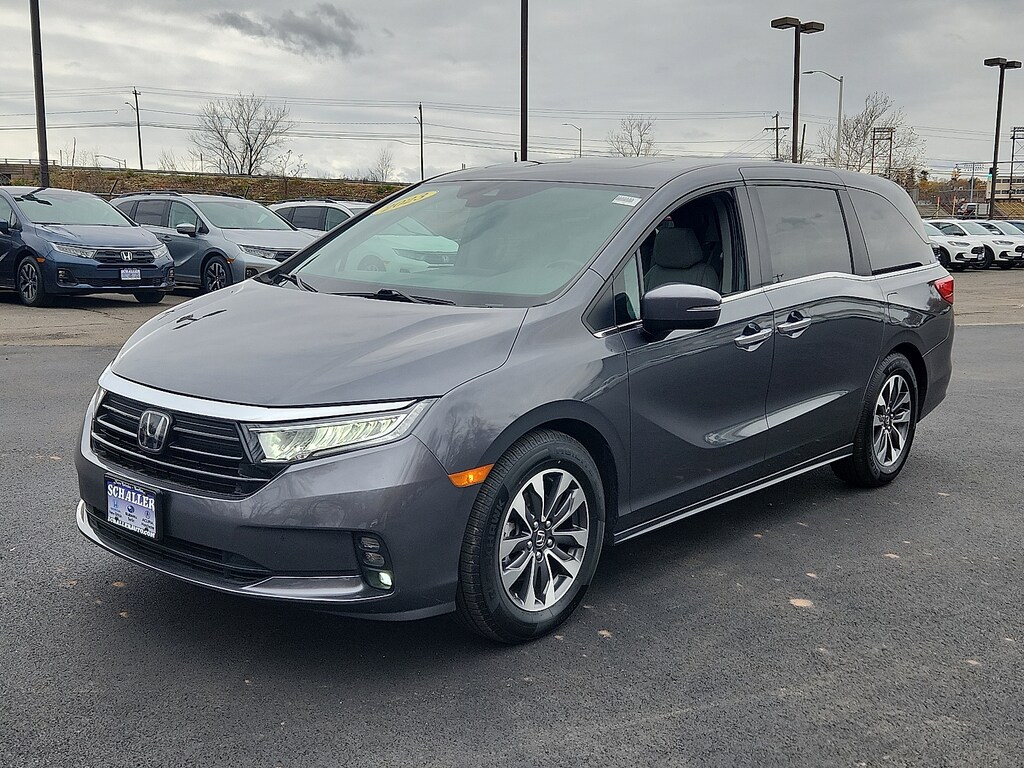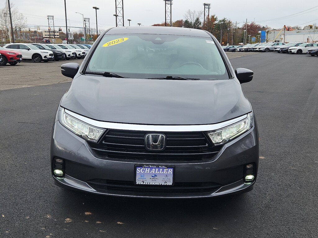 "Gray 2023 Honda Odyssey EX-L 3.5L V6 SOHC i-VTEC 24V 10-Speed Automatic FWD18""Machine-Finished Alloy Wheels 3.61 Axle Ratio 3rd row seats: split-bench 4-Wheel Disc Brakes 7 Speakers A/V remote: CabinControl ABS brakes Adaptive Cruise Control: Adaptive Cruise Control (ACC) with Low-Speed Follow Air Conditioning AM/FM radio: SiriusXM Anti-whiplash front head restraints Apple CarPlay/Android Auto Auto High-beam Headlights Auto-dimming Rear-View mirror Automatic temperature control Blind Spot Information (BSI) System warning Brake assist Bumpers: body-color Delay-off headlights Driver door bin Driver vanity mirror Driver's Seat Mounted Armrest Dual front impact airbags Dual front side impact airbags Electronic Stability Control Exterior Parking Camera Rear Four wheel independent suspension Front anti-roll bar Front Bucket Seats Front dual zone A/C Front fog lights Front reading lights Fully automatic headlights Garage door transmitter: HomeLink Heated door mirrors Heated Front Bucket Seats Heated front seats Illuminated entry Knee airbag Lane departure: Lane Keeping Assist System (LKAS) active Leather Seat Trim Leather steering wheel Low tire pressure warning Memory seat Occupant sensing airbag Outside temperature display Overhead airbag Overhead console Panic alarm Passenger door bin Passenger seat mounted armrest Passenger vanity mirror Power door mirrors Power driver seat Power Liftgate Power moonroof Power passenger seat Power steering Power windows Radio data system Radio: 160-Watt AM/FM/HD/SiriusXM Audio System Rear air conditioning Rear anti-roll bar Rear reading lights Rear seat center armrest Rear window defroster Rear window wiper Reclining 3rd row seat Remote keyless entry Security system Speed control Speed-sensing steering Speed-Sensitive Wipers Split folding rear seat Spoiler Steering wheel mounted audio controls Tachometer Telescoping steering wheel Tilt steering wheel Traction control Trip computer Turn signal indicator mirrors Variably intermittent wipers. Priced below KBB Fair Purchase Price! 19/28 City/Highway MPGSchaller Auto Group has TWO Used Car Locations: Right off Route 9 in New Britain and Route 9 and the Berlin Turnpike in Berlin. Please call 860-826-2023 to confirm this Vehicle's Location. All of our Pre-Owned Vehicles go through our Comprehensive 125 Point Quality Inspection. Every Schaller pre-owned vehicle comes with warranty coverage! With all budgets in mind we now offer Schaller âValue Carsâ starting at $2995 and include a 30 day satisfaction guarantee and all come with a FREE Carfax Vehicle History Report. The Schaller Auto Group is Family Owned and Operated for Over 65 Years and is known for Selling Top Quality Used Vehicles and Standing behind them After the Sale!"