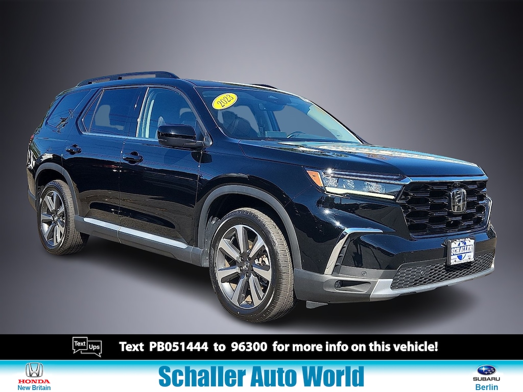 "Black 2023 Honda Pilot Elite 3.5L V6 DOHC 24V 10-Speed Automatic AWD12 Speakers 3rd row seats: split-bench 4-Wheel Disc Brakes ABS brakes Adaptive Cruise Control: Adaptive Cruise Control (ACC) with Low-Speed Follow Air Conditioning Alloy wheels AM/FM radio: SiriusXM Apple CarPlay/Android Auto Auto High-beam Headlights Auto-dimming door mirrors Auto-dimming Rear-View mirror Automatic temperature control Axle Ratio: 4.167 Blind Spot Information (BSI) System warning Bose Premium Sound System Brake assist Bumpers: body-color Compass Delay-off headlights Driver door bin Driver vanity mirror Dual front impact airbags Dual front side impact airbags Electronic Stability Control Emergency communication system: HondaLink Four wheel independent suspension Front anti-roll bar Front Bucket Seats Front Center Armrest Front dual zone A/C Front fog lights Front reading lights Fully automatic headlights Garage door transmitter: HomeLink Heads-Up Display Heated & Ventilated Front Bucket Seats Heated door mirrors Heated front seats Heated rear seats Heated steering wheel Illuminated entry Knee airbag Lane departure: Lane Keeping Assist System (LKAS) active Low tire pressure warning Memory seat Navigation system: Honda Satellite-Linked Navigation System Occupant sensing airbag Outside temperature display Overhead airbag Overhead console Panic alarm Passenger door bin Passenger vanity mirror Perforated Leather Seat Trim Power door mirrors Power driver seat Power Liftgate Power moonroof Power passenger seat Power steering Power windows Radio data system Rain sensing wipers Rear air conditioning Rear anti-roll bar Rear reading lights Rear seat center armrest Rear window defroster Rear window wiper Reclining 3rd row seat Remote keyless entry Security system Speed control Speed-sensing steering Speed-Sensitive Wipers Split folding rear seat Spoiler Steering wheel mounted audio controls Tachometer Telescoping steering wheel Tilt steering wheel Traction control Trip computer Turn signal indicator mirrors Variably intermittent wipers Ventilated front seats Wheels: 20""Machine Face Shark Gray w/Blk Lug Nuts. Priced below KBB Fair Purchase Price! Odometer is 17377 miles below market average!Schaller Auto Group has TWO Used Car Locations: Right off Route 9 in New Britain and Route 9 and the Berlin Turnpike in Berlin. Please call 860-826-2023 to confirm this Vehicle's Location. All of our Pre-Owned Vehicles go through our Comprehensive 125 Point Quality Inspection. Every Schaller pre-owned vehicle comes with warranty coverage! With all budgets in mind we now offer Schaller âValue Carsâ starting at $2995 and include a 30 day satisfaction guarantee and all come with a FREE Carfax Vehicle History Report. The Schaller Auto Group is Family Owned and Operated for Over 65 Years and is known for Selling Top Quality Used Vehicles and Standing behind them After the Sale!"