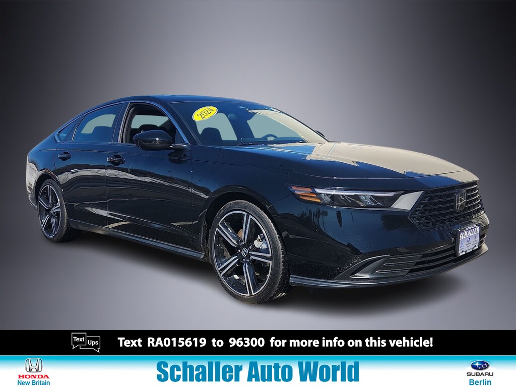 Black 2024 Honda Accord Hybrid Sport 2.0L 16V DOHC eCVT FWDPriced below KBB Fair Purchase Price! Odometer is 17269 miles below market average! 46/41 City/Highway MPGSchaller Auto Group has TWO Used Car Locations: Right off Route 9 in New Britain and Route 9 and the Berlin Turnpike in Berlin. Please call 860-826-2023 to confirm this Vehicle's Location. All of our Pre-Owned Vehicles go through our Comprehensive 125 Point Quality Inspection. Every Schaller pre-owned vehicle comes with warranty coverage! With all budgets in mind we now offer Schaller âValue Carsâ starting at $2995 and include a 30 day satisfaction guarantee and all come with a FREE Carfax Vehicle History Report. The Schaller Auto Group is Family Owned and Operated for Over 65 Years and is known for Selling Top Quality Used Vehicles and Standing behind them After the Sale!