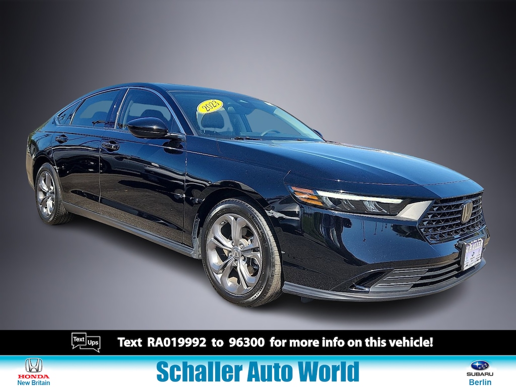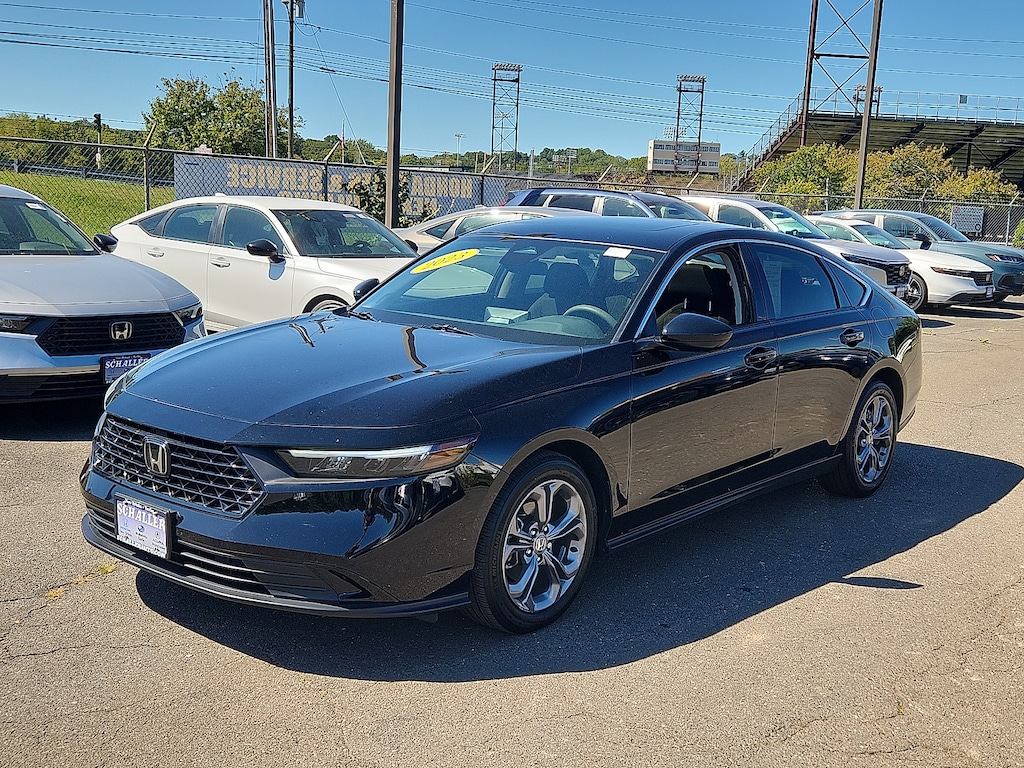 "Black 2024 Honda Accord EX 1.5T I4 DOHC 16V Turbocharged VTEC CVT FWD4-Wheel Disc Brakes 8 Speakers ABS brakes Adaptive Cruise Control: Adaptive Cruise Control (ACC) with Low-Speed Follow Air Conditioning Alloy wheels AM/FM radio Apple CarPlay/Android Auto Auto High-beam Headlights Auto-dimming Rear-View mirror Automatic temperature control Blind Spot Information (BSI) System warning Brake assist Bumpers: body-color Compass Delay-off headlights Driver door bin Driver vanity mirror Dual front impact airbags Dual front side impact airbags Electronic Stability Control Emergency communication system: HondaLink Assist Exterior Parking Camera Rear Fabric Seat Trim Four wheel independent suspension Front anti-roll bar Front Bucket Seats Front Center Armrest Front dual zone A/C Front reading lights Fully automatic headlights Heated Front Bucket Seats Heated front seats Illuminated entry Knee airbag Lane departure: Lane Keeping Assist System (LKAS) active Low tire pressure warning Occupant sensing airbag Outside temperature display Overhead airbag Overhead console Panic alarm Passenger door bin Passenger vanity mirror Power door mirrors Power driver seat Power moonroof Power steering Power windows Radio data system Radio: 180-Watt AM/FM Audio System Rear anti-roll bar Rear reading lights Rear seat center armrest Rear side impact airbag Rear window defroster Remote keyless entry Security system Speed control Speed-sensing steering Speed-Sensitive Wipers Split folding rear seat Steering wheel mounted audio controls Tachometer Telescoping steering wheel Tilt steering wheel Traction control Trip computer Variably intermittent wipers Wheels: 17""x 7.5""Pewter Gray. 29/37 City/Highway MPGSchaller Auto Group has TWO Used Car Locations: Right off Route 9 in New Britain and Route 9 and the Berlin Turnpike in Berlin. Please call 860-826-2023 to confirm this Vehicle's Location. All of our Pre-Owned Vehicles go through our Comprehensive 125 Point Quality Inspection. Every Schaller pre-owned vehicle comes with warranty coverage! With all budgets in mind we now offer Schaller âValue Carsâ starting at $2995 and include a 30 day satisfaction guarantee and all come with a FREE Carfax Vehicle History Report. The Schaller Auto Group is Family Owned and Operated for Over 65 Years and is known for Selling Top Quality Used Vehicles and Standing behind them After the Sale!"