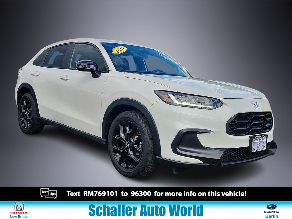 "Platinum White 2024 Honda HR-V Sport 2.0L I4 DOHC 16V i-VTEC CVT AWD4-Wheel Disc Brakes 5.436 Axle Ratio 6 Speakers ABS brakes Adaptive Cruise Control: Adaptive Cruise Control (ACC) with Low-Speed Follow Air Conditioning Alloy wheels AM/FM radio Apple CarPlay/Android Auto Auto High-beam Headlights Automatic temperature control Blind Spot Information (BSI) System warning Brake assist Bumpers: body-color Cloth Seat Trim Delay-off headlights Driver door bin Driver vanity mirror Dual front impact airbags Dual front side impact airbags Electronic Stability Control Emergency communication system: HondaLink Exterior Parking Camera Rear Four wheel independent suspension Front anti-roll bar Front Bucket Seats Front Center Armrest Front reading lights Fully automatic headlights Heated door mirrors Heated Front Bucket Seats Heated front seats Illuminated entry Knee airbag Leather Shift Knob Leather steering wheel Low tire pressure warning Occupant sensing airbag Outside temperature display Overhead airbag Panic alarm Passenger door bin Passenger vanity mirror Power door mirrors Power steering Power windows Radio data system Radio: 180-Watt Audio System w/6 Speakers Rear anti-roll bar Rear reading lights Rear side impact airbag Rear window defroster Rear window wiper Remote keyless entry Security system Speed control Speed-sensing steering Split folding rear seat Spoiler Steering wheel mounted audio controls Tachometer Telescoping steering wheel Tilt steering wheel Traction control Trip computer Turn signal indicator mirrors Variably intermittent wipers Wheels: 18""Gloss Black Alloy. 25/30 City/Highway MPGSchaller Auto Group has TWO Used Car Locations: Right off Route 9 in New Britain and Route 9 and the Berlin Turnpike in Berlin. Please call 860-826-2023 to confirm this Vehicle's Location. All of our Pre-Owned Vehicles go through our Comprehensive 125 Point Quality Inspection. Every Schaller pre-owned vehicle comes with warranty coverage! With all budgets in mind we now offer Schaller âValue Carsâ starting at $2995 and include a 30 day satisfaction guarantee and all come with a FREE Carfax Vehicle History Report. The Schaller Auto Group is Family Owned and Operated for Over 65 Years and is known for Selling Top Quality Used Vehicles and Standing behind them After the Sale!"
