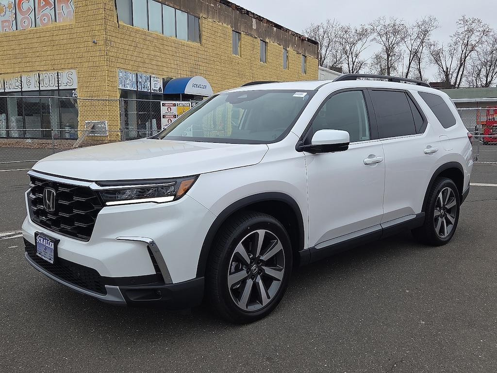 "Platinum White Pearl 2025 Honda Pilot Elite 3.5L V6 DOHC 24V 10-Speed Automatic AWD12 Speakers 3rd row seats: split-bench 4-Wheel Disc Brakes 4.167 Axle Ratio ABS brakes Adaptive Cruise Control: Adaptive Cruise Control (ACC) with Low-Speed Follow Air Conditioning AM/FM radio: SiriusXM Apple CarPlay/Android Auto Auto High-beam Headlights Auto-dimming door mirrors Auto-dimming Rear-View mirror Automatic temperature control Blind Spot Information (BSI) System warning Bose Premium Sound System Brake assist Bumpers: body-color Compass Delay-off headlights Driver door bin Driver vanity mirror Dual front impact airbags Dual front side impact airbags Electronic Stability Control Emergency communication system: HondaLink Exterior Parking Camera Rear Four wheel independent suspension Front anti-roll bar Front Bucket Seats Front Center Armrest Front dual zone A/C Front fog lights Front reading lights Fully automatic headlights Garage door transmitter: HomeLink Heads-Up Display Heated and Ventilated Front Bucket Seats Heated door mirrors Heated front seats Heated rear seats Heated steering wheel Honda Satellite-Linked Navigation System HondaLink Subscription Services Illuminated entry Knee airbag Lane departure: Lane Keeping Assist System (LKAS) active Low tire pressure warning Memory seat Navigation system: Honda Satellite-Linked Navigation System Occupant sensing airbag Outside temperature display Overhead airbag Overhead console Panic alarm Passenger door bin Passenger vanity mirror Perforated Leather Seat Trim Power door mirrors Power driver seat Power Liftgate Power moonroof Power passenger seat Power steering Power windows Radio data system Rain sensing wipers Rear air conditioning Rear anti-roll bar Rear reading lights Rear seat center armrest Rear window defroster Rear window wiper Reclining 3rd row seat Remote keyless entry Security system SiriusXM Speed control Speed-sensing steering Speed-Sensitive Wipers Split folding rear seat Spoiler Steering wheel mounted audio controls Tachometer Telescoping steering wheel Tilt steering wheel Traction control Trip computer Turn signal indicator mirrors Variably intermittent wipers Ventilated front seats Wheels: 20""Shark Gray Machine Face with Black Lug Nuts.Schaller Auto Group has TWO Used Car Locations: Right off Route 9 in New Britain and Route 9 and the Berlin Turnpike in Berlin. Please call 860-826-2023 to confirm this Vehicle's Location. All of our Pre-Owned Vehicles go through our Comprehensive 125 Point Quality Inspection. Every Schaller pre-owned vehicle comes with warranty coverage! With all budgets in mind we now offer Schaller âValue Carsâ starting at $2995 and include a 30 day satisfaction guarantee and all come with a FREE Carfax Vehicle History Report. The Schaller Auto Group is Family Owned and Operated for Over 65 Years and is known for Selling Top Quality Used Vehicles and Standing behind them After the Sale!"