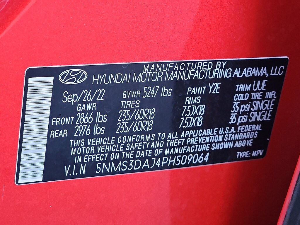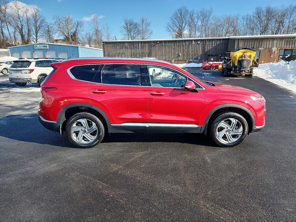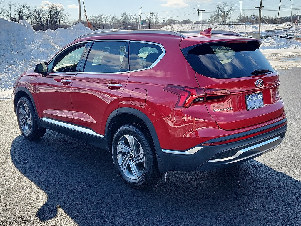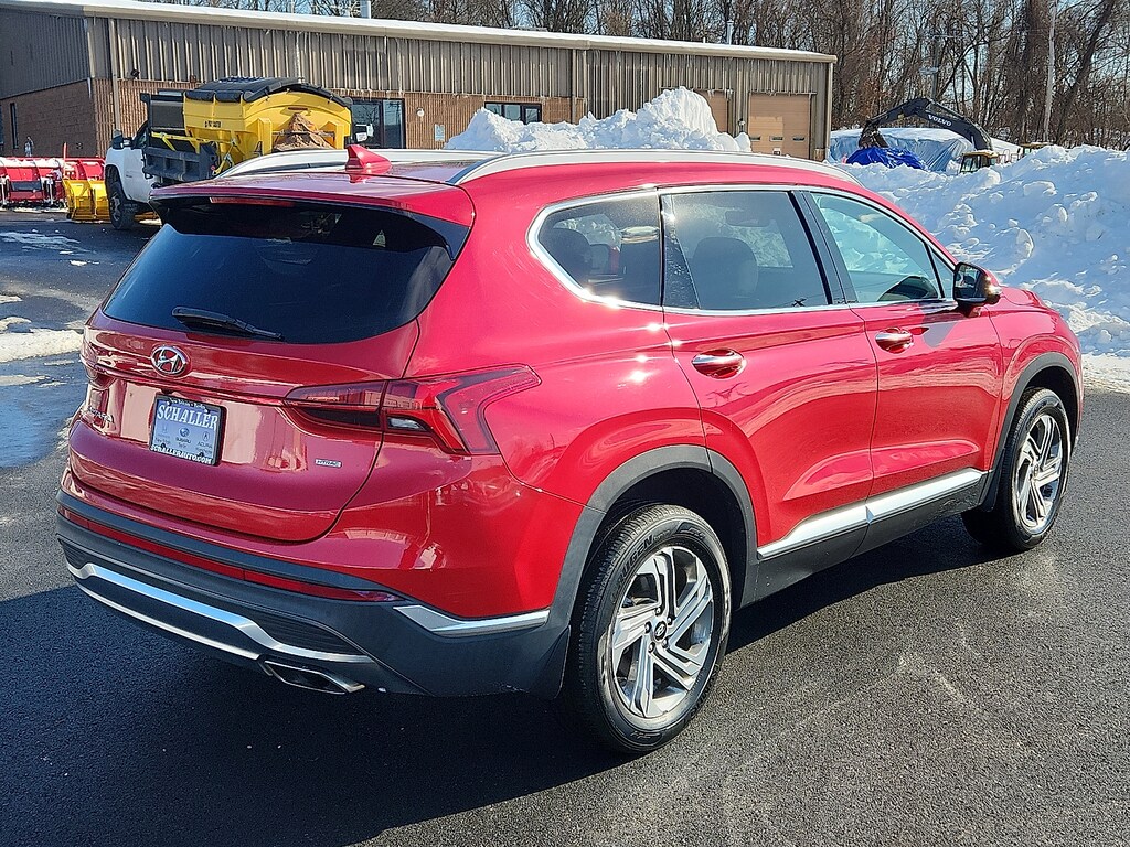 "Calypso Red 2023 Hyundai Santa Fe SEL 2.5L I4 8-Speed Automatic with SHIFTRONIC AWD12.3""LCD Multi-Information Display 18""x 7.5J Alloy Wheels 4-Wheel Disc Brakes 6 Speakers 8-Way Power Passenger Seat ABS brakes Acoustic-Laminated Front Side Windows Air Conditioning Alloy wheels AM/FM radio: SiriusXM Apple CarPlay & Android Auto Auto High-beam Headlights Auto-Dimming Rear-View Mirror Automatic temperature control Axle Ratio: 4.081 Blind-Spot View Monitor Brake assist Bumper Applique Bumpers: body-color Cargo Net Cargo Package Cargo Tray Carpeted Floor Mats Chrome Front & Rear Bumper Accents Chrome Interior Accents Delay-off headlights Driver door bin Driver vanity mirror Dual front impact airbags Dual front side impact airbags Electronic Stability Control Emergency communication system Exterior Parking Camera Rear First Aid Kit Four wheel independent suspension Front anti-roll bar Front Bucket Seats Front Center Armrest Front dual zone A/C Front reading lights Fully automatic headlights H-Tex Leatherette Seat Trim harman/kardon® Audio System Heated door mirrors Heated Front Bucket Seats Heated front seats Illuminated entry Leather steering wheel LED Interior Lights LED Taillights Low tire pressure warning Manual Rear Side Sunshades Mudguards Navigation System Occupant sensing airbag Option Group 02 Outside temperature display Overhead airbag Overhead console Panic alarm Panoramic Sunroof Passenger door bin Passenger vanity mirror Power door mirrors Power driver seat Power Liftgate Power Release 2nd Row Seats Power steering Power windows Premium Package Radio: AM/FM Display Audio Rear anti-roll bar Rear seat center armrest Rear window defroster Rear window wiper Remote keyless entry Security system Silver Front Grille Speed control Speed-sensing steering Split folding rear seat Spoiler Stain-Resistant Cloth Seat Trim Steering wheel mounted audio controls Surround View Monitor Tachometer Telescoping steering wheel Tilt steering wheel Traction control Trip computer Turn signal indicator mirrors Variably intermittent wipers. Odometer is 6774 miles below market average!Schaller Auto Group has TWO Used Car Locations: Right off Route 9 in New Britain and Route 9 and the Berlin Turnpike in Berlin. Please call 860-826-2023 to confirm this Vehicle's Location. All of our Pre-Owned Vehicles go through our Comprehensive 125 Point Quality Inspection. Every Schaller pre-owned vehicle comes with warranty coverage! With all budgets in mind we now offer Schaller âValue Carsâ starting at $2995 and include a 30 day satisfaction guarantee and all come with a FREE Carfax Vehicle History Report. The Schaller Auto Group is Family Owned and Operated for Over 65 Years and is known for Selling Top Quality Used Vehicles and Standing behind them After the Sale!"