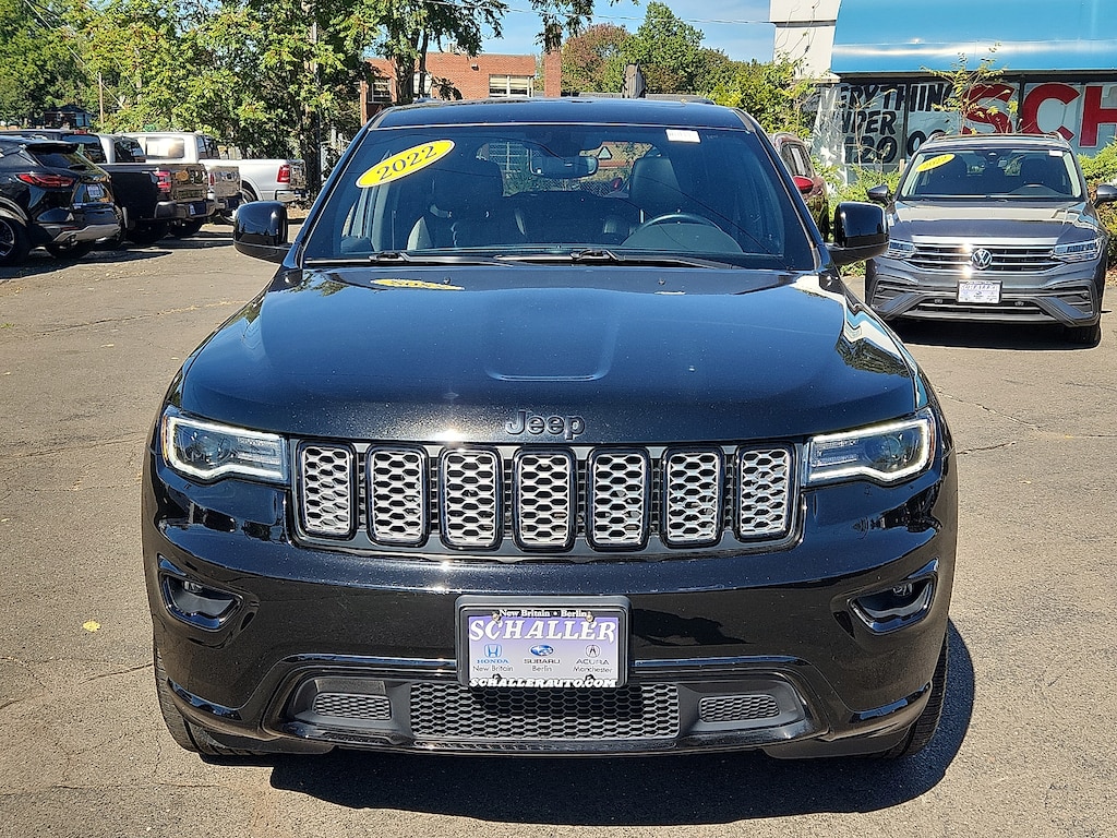 "Diamond Black Crystal Pearlcoat 2022 Jeep Grand Cherokee WK Laredo X 3.6L V6 24V VVT 8-Speed Automatic 4WD115V Auxiliary Power Outlet 3.45 Rear Axle Ratio 4-Wheel Disc Brakes 506 Watt Amplifier 6 Speakers ABS brakes Active Noise Control System Air Conditioning Alloy wheels Altitude Appearance Package Altitude Grille AM/FM radio: SiriusXM Anti-whiplash front head restraints Apple CarPlay/Android Auto Auto High Beam Headlamp Control Auto-dimming Rear-View mirror Automatic temperature control Bi-Xenon High-Intensity Discharge Headlamps Black Suede Seats w/Black Stitching Body Color Claddings Body Color Fascia Body Color Shark Fin Antenna Brake assist Bumpers: body-color Cloth Bucket Seats Compass Dark Day Light Opening Moldings Dark Headlamp Bezel Finish Dark Lens Taillamps Delay-off headlights Delete Laredo Badge Driver door bin Driver vanity mirror Dual front impact airbags Dual front side impact airbags Electronic Stability Control Emergency communication system: SiriusXM Guardian Four wheel independent suspension Front Accent/Body Color Fascia Front anti-roll bar Front Bucket Seats Front Center Armrest w/Storage Front dual zone A/C Front fog lights Front LED Fog Lamps Front reading lights Fully automatic headlights Gloss Black Jeep Badging Gloss Black Rear Fascia Applique Heated door mirrors Heated Front Seats Heated Steering Wheel Hill Descent Control Illuminated entry Knee airbag Leather Shift Knob LED Daytime Running Headlamps Low tire pressure warning Navigation System Normal Duty Suspension Occupant sensing airbag Outside temperature display Overhead airbag Overhead console Panic alarm ParkView Rear Back-Up Camera Passenger door bin Passenger vanity mirror Power door mirrors Power driver seat Power Liftgate Power steering Power Sunroof Power windows Premium Alpine Speaker System Quadra-Trac II 4WD System Quick Order Package 2GM Laredo X (DISC) Radio data system Radio: Uconnect 4C Nav w/8.4""Display Rear Accent/Body Color Fascia Rear anti-roll bar Rear Fascia Black Molded in Color Step Pad Rear reading lights Rear seat center armrest Rear window defroster Rear window wiper Remote keyless entry Remote Start System Security Alarm Selec-Terrain System Single Exhaust w/Bright Tip Speed control Speed-sensing steering Speed-Sensitive Wipers Split folding rear seat Spoiler Steering Wheel Mounted Audio Controls Steering wheel mounted audio controls Tachometer Tech Group Telescoping steering wheel Tilt steering wheel Traction control Trip computer Universal Garage Door Opener Variably intermittent wipers Wheels: 18""x 8.0""Fine Silver Aluminum Wheels: 20""x 8.0""Gloss Black Aluminum.Schaller Auto Group has TWO Used Car Locations: Right off Route 9 in New Britain and Route 9 and the Berlin Turnpike in Berlin. Please call 860-826-2023 to confirm this Vehicle's Location. All of our Pre-Owned Vehicles go through our Comprehensive 125 Point Quality Inspection. Every Schaller pre-owned vehicle comes with warranty coverage! With all budgets in mind we now offer Schaller âValue Carsâ starting at $2995 and include a 30 day satisfaction guarantee and all come with a FREE Carfax Vehicle History Report. The Schaller Auto Group is Family Owned and Operated for Over 65 Years and is known for Selling Top Quality Used Vehicles and Standing behind them After the Sale!"