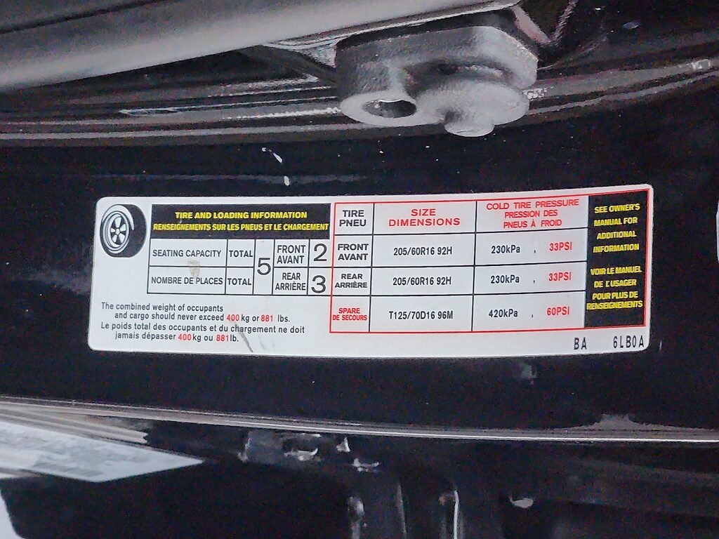 - Rear tires: 205/60HR16.0