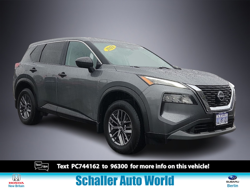 "Gun Metallic 2023 Nissan Rogue S 1.5L I3 Turbocharged DOHC 12V LEV3-ULEV50 201hp CVT with Xtronic AWD17""Aluminum Alloy Wheels 4 Speakers 4-Wheel Disc Brakes 5.604 Axle Ratio ABS brakes Air Conditioning Alloy wheels AM/FM Radio AM/FM radio: SiriusXM Auto High-beam Headlights Black Splash Guards (Set of 4) Blind Spot Warning Brake assist Bumpers: body-color Cloth Seat Trim Delay-off headlights Driver door bin Driver vanity mirror Dual front impact airbags Dual front side impact airbags Electronic Stability Control First Aid Kit Floor Mats w/1-Piece Cargo Area Protector Four wheel independent suspension Front anti-roll bar Front Bucket Seats Front Center Armrest Front reading lights Fully automatic headlights Illuminated entry Knee airbag Low tire pressure warning NissanConnect featuring Apple CarPlay and Android Auto Occupant sensing airbag Outside temperature display Overhead airbag Overhead console Panic alarm Passenger door bin Passenger vanity mirror Power door mirrors Power steering Power windows Radio data system Rear anti-roll bar Rear Parking Sensors Rear seat center armrest Rear side impact airbag Rear window defroster Rear window wiper Remote keyless entry Speed control Speed-Sensitive Wipers Split folding rear seat Spoiler Steering wheel mounted audio controls Tachometer Telescoping steering wheel Tilt steering wheel Traction control Trip computer Variably intermittent wipers. Priced below KBB Fair Purchase Price! Odometer is 2986 miles below market average! 28/35 City/Highway MPGSchaller Auto Group has TWO Used Car Locations: Right off Route 9 in New Britain and Route 9 and the Berlin Turnpike in Berlin. Please call 860-826-2023 to confirm this Vehicle's Location. All of our Pre-Owned Vehicles go through our Comprehensive 125 Point Quality Inspection. Every Schaller pre-owned vehicle comes with warranty coverage! With all budgets in mind we now offer Schaller âValue Carsâ starting at $2995 and include a 30 day satisfaction guarantee and all come with a FREE Carfax Vehicle History Report. The Schaller Auto Group is Family Owned and Operated for Over 65 Years and is known for Selling Top Quality Used Vehicles and Standing behind them After the Sale!"