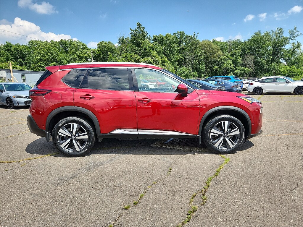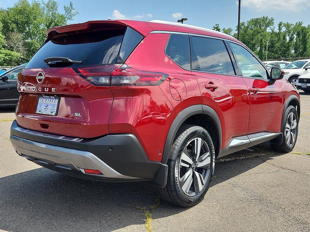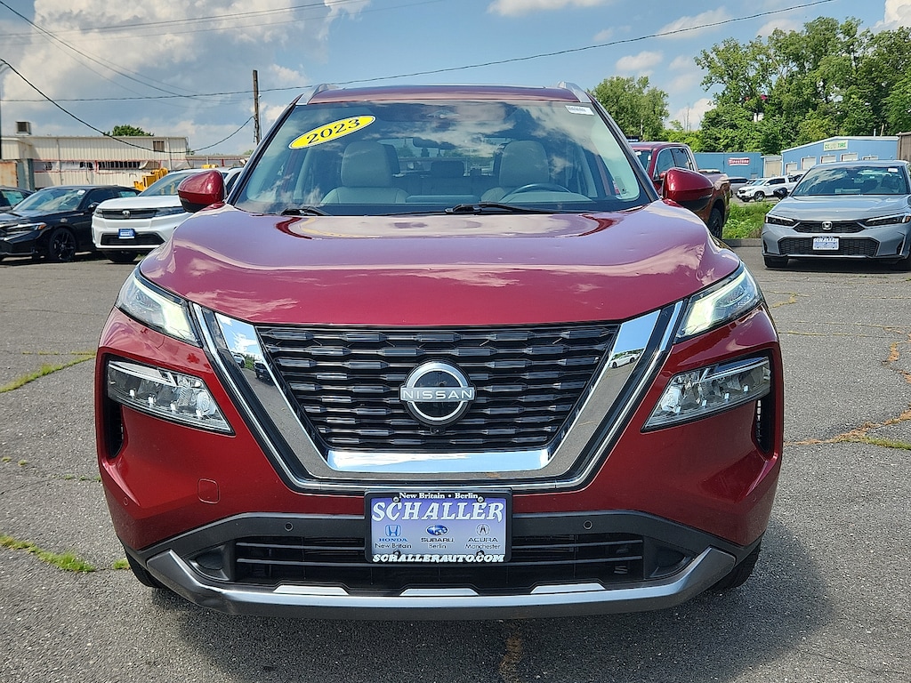 "Scarlet Ember Tintcoat 2023 Nissan Rogue SL 1.5L I3 Turbocharged DOHC 12V LEV3-ULEV50 201hp CVT with Xtronic FWD19""Aluminum Alloy Wheels 4-Wheel Disc Brakes 5.604 Axle Ratio 6 Speakers ABS brakes Air Conditioning Alloy wheels AM/FM Radio AM/FM radio: SiriusXM Auto High-beam Headlights Auto-dimming Rear-View mirror Automatic temperature control Black Splash Guards (Set of 4) Bose Premium Audio System Brake assist Bumpers: body-color Chrome Rear Bumper Protector Delay-off headlights Driver door bin Driver vanity mirror Dual front impact airbags Dual front side impact airbags Electronic Stability Control Emergency communication system: NissanConnect Services First Aid Kit Floor Mats w/2-Piece Cargo Area Protector Four wheel independent suspension Front anti-roll bar Front Bucket Seats Front Center Armrest Front dual zone A/C Front reading lights Front Side & Rear Sonar Fully automatic headlights Heated door mirrors Heated Front Bucket Seats Heated front seats Heated steering wheel Illuminated entry Knee airbag Leather steering wheel Leather-Appointed Seat Trim Low tire pressure warning Memory seat Motion Activated Power Liftgate NissanConnect featuring Apple CarPlay and Android Auto Occupant sensing airbag Outside temperature display Overhead airbag Overhead console Panic alarm Passenger door bin Passenger vanity mirror Power door mirrors Power driver seat Power Liftgate Power moonroof Power passenger seat Power steering Power windows ProPILOT Assist w/Navi-link Radio data system Radio: AM/FM NissanConnect w/Navigation Rear anti-roll bar Rear Door Sunshades Rear Parking Sensors Rear reading lights Rear seat center armrest Rear side impact airbag Rear window defroster Rear window wiper Remote keyless entry Security system SL Premium Package Speed control Speed-Sensitive Wipers Split folding rear seat Spoiler Steering wheel mounted audio controls Tachometer Telescoping steering wheel Tilt steering wheel Traction control Traffic Sign Recognition Tri-Zone HVAC Trip computer Turn signal indicator mirrors Variably intermittent wipers. Priced below KBB Fair Purchase Price! 29/36 City/Highway MPGSchaller Auto Group has TWO Used Car Locations: Right off Route 9 in New Britain and Route 9 and the Berlin Turnpike in Berlin. Please call 860-826-2023 to confirm this Vehicle's Location. All of our Pre-Owned Vehicles go through our Comprehensive 125 Point Quality Inspection. Every Schaller pre-owned vehicle comes with warranty coverage! With all budgets in mind we now offer Schaller âValue Carsâ starting at $2995 and include a 30 day satisfaction guarantee and all come with a FREE Carfax Vehicle History Report. The Schaller Auto Group is Family Owned and Operated for Over 65 Years and is known for Selling Top Quality Used Vehicles and Standing behind them After the Sale!"